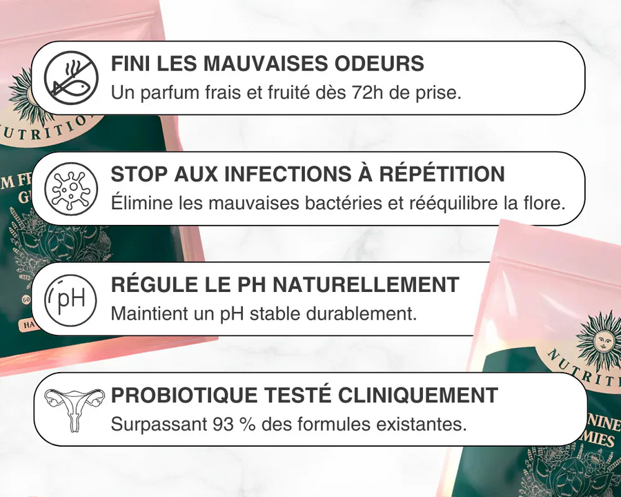 Oui ✅ Les probiotiques rééquilibrent la flore intime, l’extrait d’ananas aide à neutraliser les odeurs, et la vitamine C stimule la lubrification naturelle.97% de nos clientesdisent se sentir plus fraîches et confiantes.